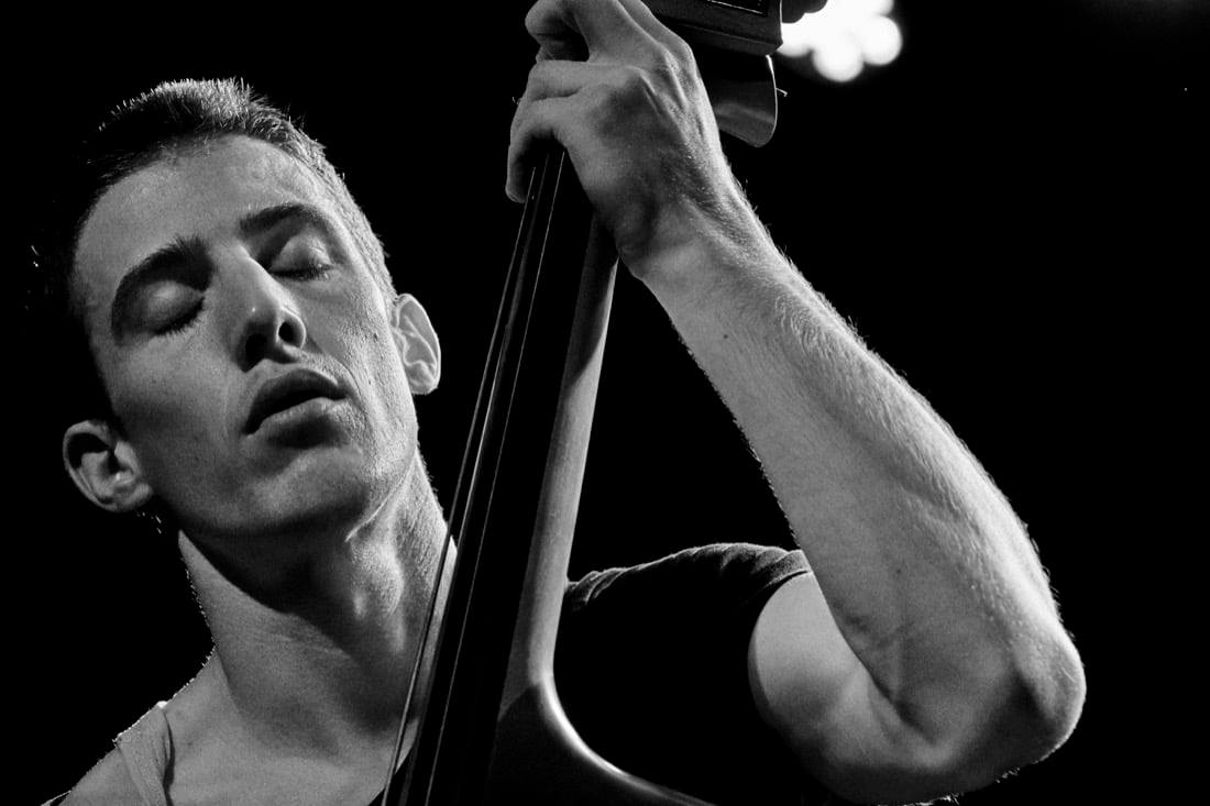 An den Anfang des Abschlusstages stellte MANU MAYR eine elaboriert klangforschende SOLO-Performance. Im ersten Teil widmete er sich dem E-Bass, dem er die Rolle eines Steuerungsgerätes für diverse Effektgeräte zuweist. Oszillierende Klangstränge, hoher Geräuschfaktor inklusive, bündeln sich in elektrisierenden Interferenzen, spontan manipuliert mittels der Regler des Instrumentes. Nonkonformität ist für Mayr unerlässliche Antriebskraft. Dann der Wechsel zum Kontrabass. Der Bespieler stellt ein arco gespieltes Arpeggio, in einen Loop-Modus eingefädelt, ins Zentrum seines Recitals. Das Muster wächst an, reduziert sich. Obertonreihen beginnen sich zu potenzieren. Exorbitante Suggestivkraft schwillt sukzessive an. Mit unglaublicher Präzision und ebenso blühender Polyphonie lotet Mayr das Fluidum eines einzelnen Klangereignisses aus. Umfassend, zur Tiefe hin abgestufte Weiträumigkeit, eine zum oberen Oktavbereich hin komprimierte Schärfung. Ein Modus Operandi von Ausnahmegüte. Final war der musikalische Diversitätsspezialist Manu Mayr in seiner Rolle als Bassist der derzeit äußerst erfolgreichen Avant-Pop Band 5K HD zu erleben. Die stilistischen Multispektralisten mit dem kryptischen Namen. Bekannt für einen massiven elektrifizierten Sound, Jazz, Rock, Dancefloor-Electronica gespießt, mit eben diesem gewieft wandelbaren Pop-Appeal. Doch diesmal ohne Strom, aber unter Strom. Die dabei angewandte Entschleunigung steht den kompakten Songs wunderbar zu Gesicht. Sensitivität und Bedachtsamkeit liegt dem kollektiven Entstehungsprozess zu Grunde. Ausgegangen wird von den typischen, funktionsharmonisch definierten Themen die knietief durch Pop-Gewässer stapfen, jedoch entsprechende Gefälligkeiten durch raffinierte harmonische und rhythmische Wendungen gezielt aufbrechen. Da steht die charismatische Mira Lu Kovacs, diesmal nur mit ihrer hochlagig schlanken, intonationsdirekten Stimme präsent, zunächst im Fokus. Wobei Trompeter Eberle fallweise, in zweistimmigen Parts, als profunder Sänger verblüfft. Folgeentwicklungen der Songs schreien nach den Instrumentalisten, die in durchleuchtender Intensität, diesen eine feinnervige Körperform anpassen. Aus der Trompete strömen beherrschte Noise-Attacken, die Techno-like akzentuieren oder losgelöst eruptieren. Solistisch, limitlos in den Möglichkeiten, spielt nur sie die Hauptrolle. Benny Omerzell lüftet breitgefächerte Harmonien, tendiert zum Unkonventionellen, Manu Mayr ist so unterstützend wie initiativ, alternierend zwischen „gitarrenhaftem“ und perfektem arco-Spiel, präsent. Abgerundet wird das Liedgut mit dem perkussiven Geschick des neuen Drummers Andreas Lettner. Dem es ziemlich frei steht, die Time zu dehnen oder zu straffen, die Akzente vor oder hinter den Beat zu setzten, den Groove periodisch auszulegen oder metrisch entbunden schwirren zu lassen. Ausgesteckt bei 5K HD legt den vielgestaltige Rohbau und die Dringlichkeit des Konzeptes offen.